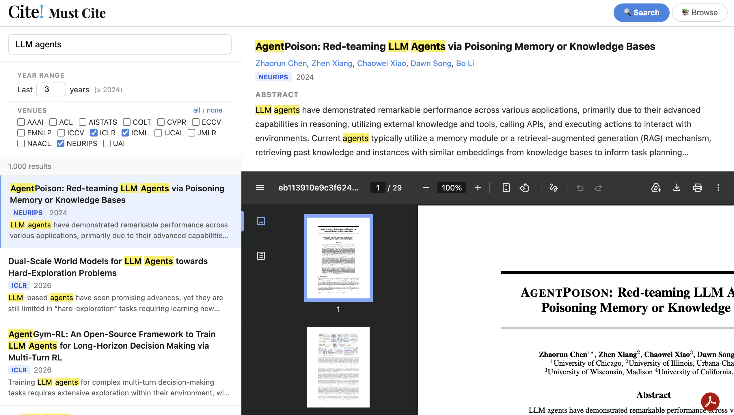 Rider Rider is a search engine for research papers that I built to support my own research workflow. 馃敆 Live Demo: http://rider.cs.niu.edu/ Motivation Existing academic search platforms such as Google Scholar and Semantic Scholar are extremely useful, but they often introduce friction in daily research workflows: Noisy or inconsistent metadata Limited control over conference-level filtering Difficulty focusing on high-quality venues Mixed archival vs. non-archival content Ranking not always aligned with research needs To address these issues, Rider focuses on clean, curated, and conference-aware search for research papers. ...